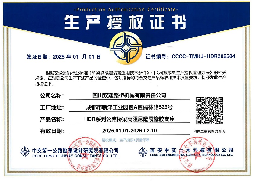 交通产品CCPC认证证书-桥梁隔震橡胶支座